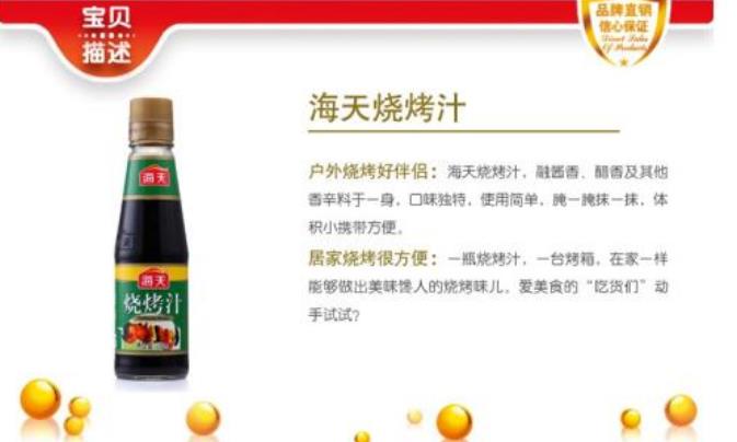 烧烤汁一种是新型复合调味品,呈黑褐色,味咸鲜香浓。烧烤汁是以多种天然香辛料的浸提液为基料,加多种辅料调配而成,具有咸、甜、鲜、香、熏味。